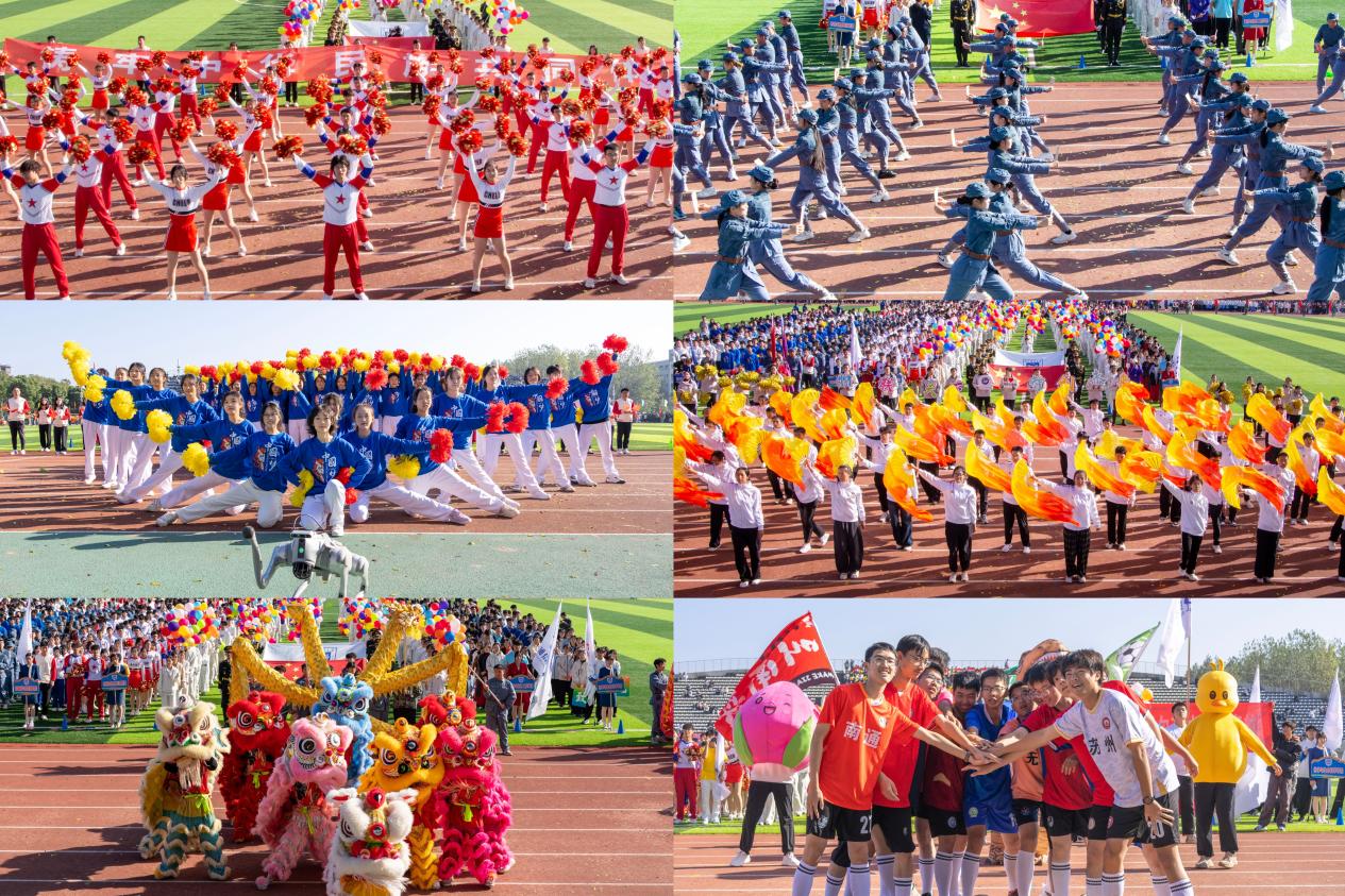 开幕式表演环节精彩不断。由校工会策划的教职工《第九套广播体操》表演,展现出教师们健康活力、积极向上的精神面貌。创意龙狮表演《纪念抗战胜利80周年——正义必胜》以气势恢宏的艺术语言,生动再现了中华民族在抗日战争中的英勇历程与不屈精神,演出在“正义必胜、和平必胜、人民必胜”的集体高呼中达到情感顶峰。由大二年级640名女生带来的大型团体操《解码青春》,通过不断变换队形与画板色彩,依次呈现出南邮红绿蓝特色元素,传递了“爱运动、邮未来”的精神内涵。