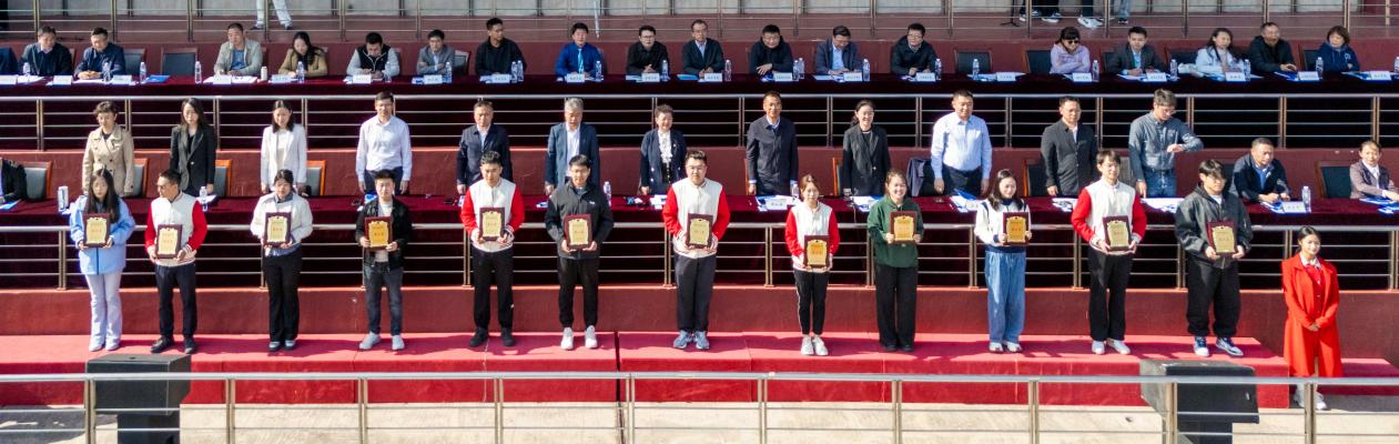 校领导和部分职能部门负责人为第七届体育文化月团体前六名颁奖。