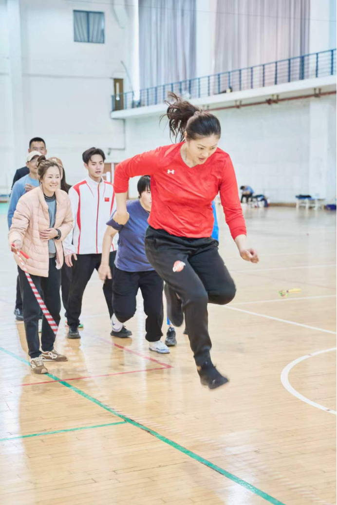 活动现场绳影翩跹,节奏鲜明。在谢维俊老师的逐步指导下,教师们从基础花样动作入门,陆续学习交互绳、车轮跳及多种组合花式技巧,并围绕跳绳教学中的重点、难点展开互动研讨与细节打磨。随后,全体教师分为四组展开友谊赛,大家在比赛中团结协作、勇于挑战,生动诠释了“友谊第一、拼搏向前”的体育精神,场馆内始终洋溢着热烈、进取的锻炼氛围。