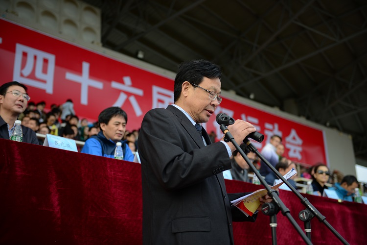 党委副书记、纪委书记朱永平宣布学校第四十六届田径运动会开幕。