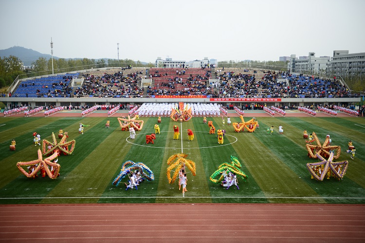 开幕式表演环节,来自全校25个基层工会、540名老师表演的“第九套大众广播体操”动作规范、整齐划一,凸显了南邮教职工的激情、阳光;经济学院编排了大型表演《水鼓·中国龙》,女子鼓队、青花瓷鼓和龙鼓的激情碰撞,融合着女性的柔美和鼓气的阳刚,鼓声中九条神龙腾空而出,时而神龙出宫,时而五星揽月,时而孔雀开屏,组成“中国龙”几个大字,祝愿祖国蒸蒸日上,繁荣昌盛;跆拳道表演整齐有序,郭野老师的武术表演更是震人心魄;70名国防生组成的旗舞表演活力无限,展现了执着拼搏、争先报国的军人作风;啦啦操表演的同学们犹如一朵朵怒放的红梅,迸发出无限的青春活力,并拼出NUPT造型。