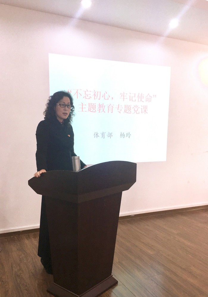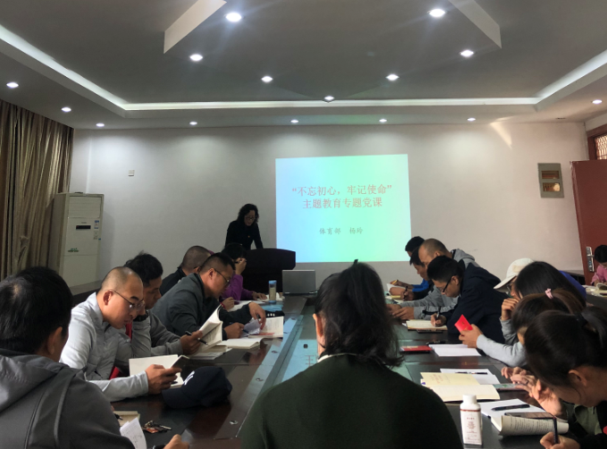10月30日中午,按照体育部“不忘初心、牢记使命”主题教育工作计划安排,党总支书记杨玲在仙林体育馆202会议室,为全体党员讲授“不忘初心、牢记使命”主题教育专题党课。
