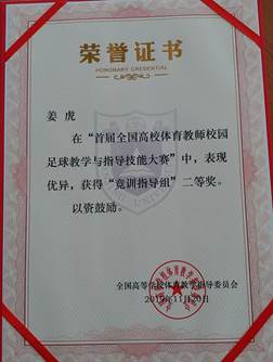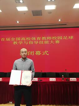 11月18日至20日,首届全国高校体育教师校园足球教学与指导技能大赛在南京大学闭幕。我部教师姜虎在近两百名参赛足球教师中脱颖而出,荣获竞训指导组二等奖。