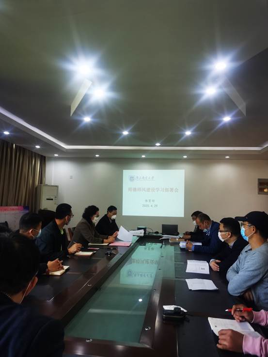 2020年4月29日上午,体育部在仙林体育馆202会议室召开了师德师风建设学习部署会,体育部党总支副书记、主任朱建勇、副主任陈友民、副主任邱锴、教研室主任和中心主任参加了此次会议,由体育部党总支书记杨玲主持。