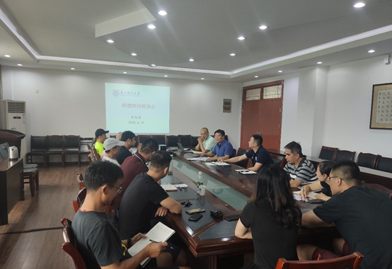 6月19日下午,按照学校师德师风建设实施方案部署,体育部在体育馆202会议室召开师德师风建设座谈会。会议由党总支书记陈友民主持,主任朱建勇、副主任邱锴和部分教师代表参加了会议并发言。