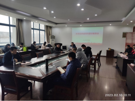 最后,体育部党总支书记陈友民同志对教职工年度学习要点作了讲解,对全体教师师德师风建设进行了警示教育。